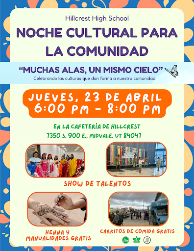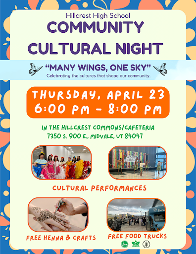 The annual Hillcrest Community Cultural Night is on April 23rd from 6:00 pm-8:00 pm. There will be performances, free food trucks, free henna, and booths!